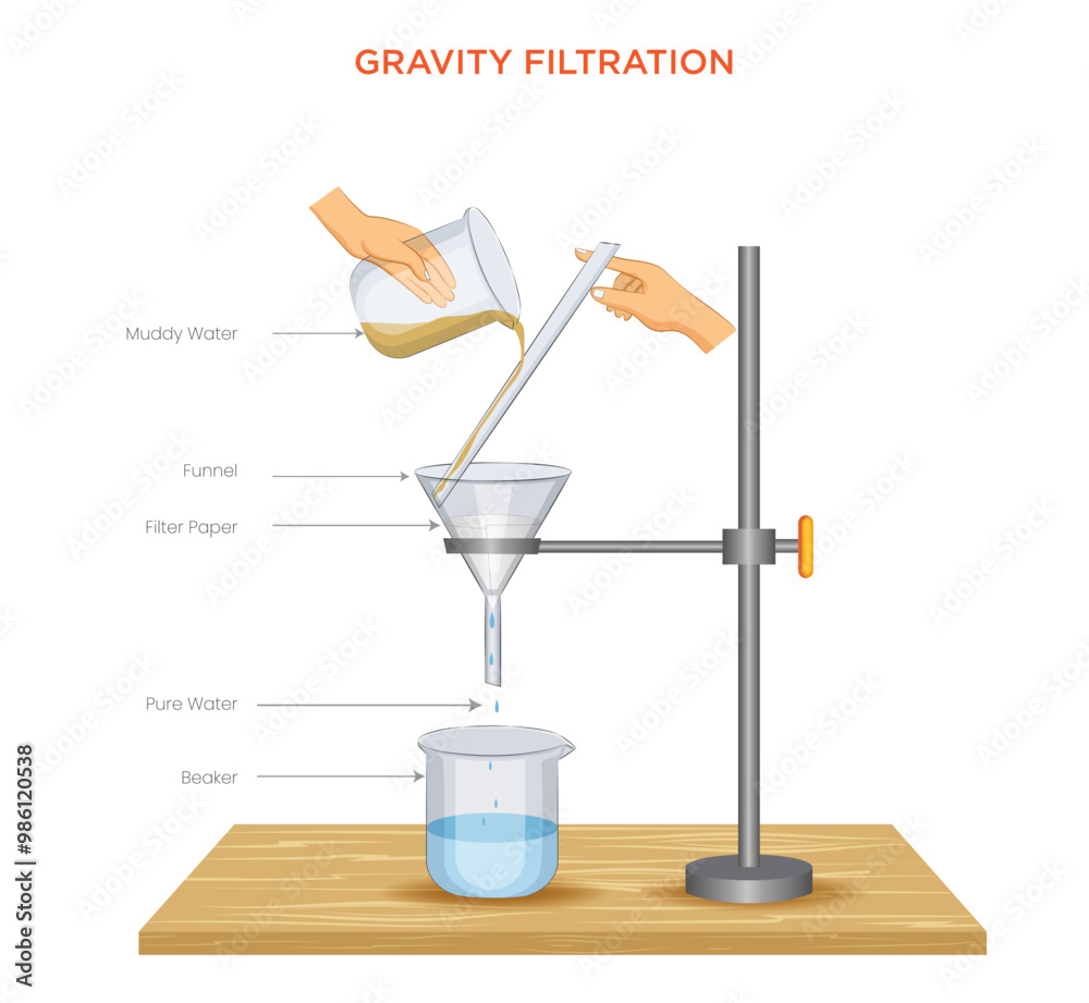 Obraz na plátně Gravity Filtration Diagram Separating Solids from Liquids Using Filter Paper and