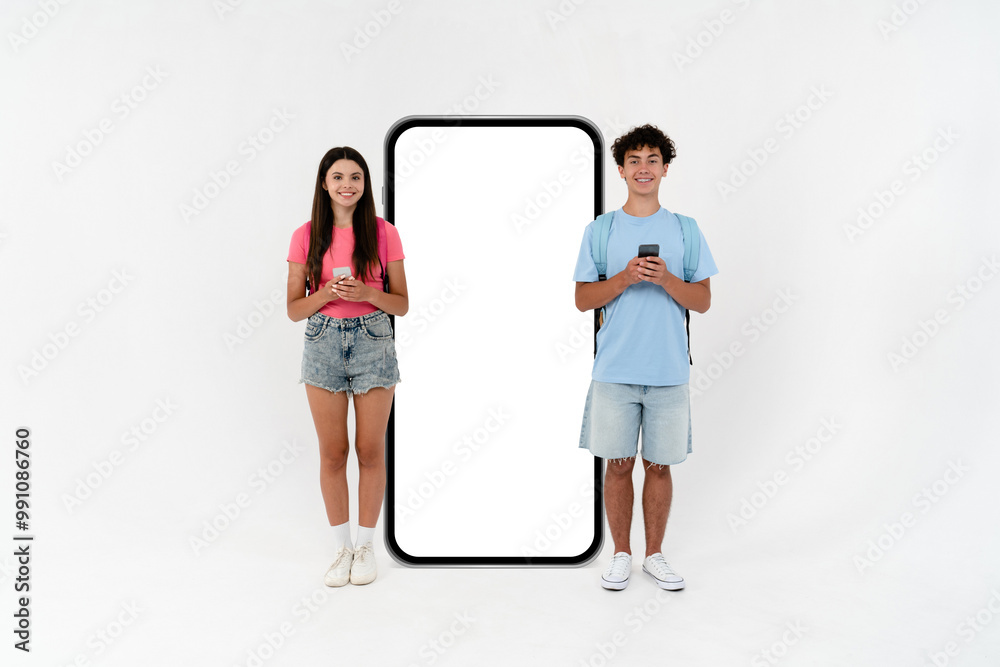Obraz na plátně Full size of high school pupils students teenagers boy girl in casual standing b