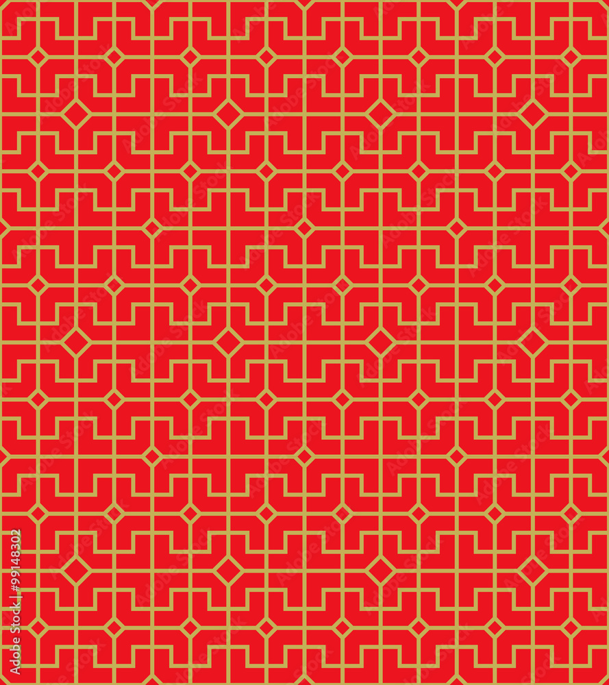 Obraz na plátně Seamless vintage golden Chinese window tracery golden square check geometry line pattern