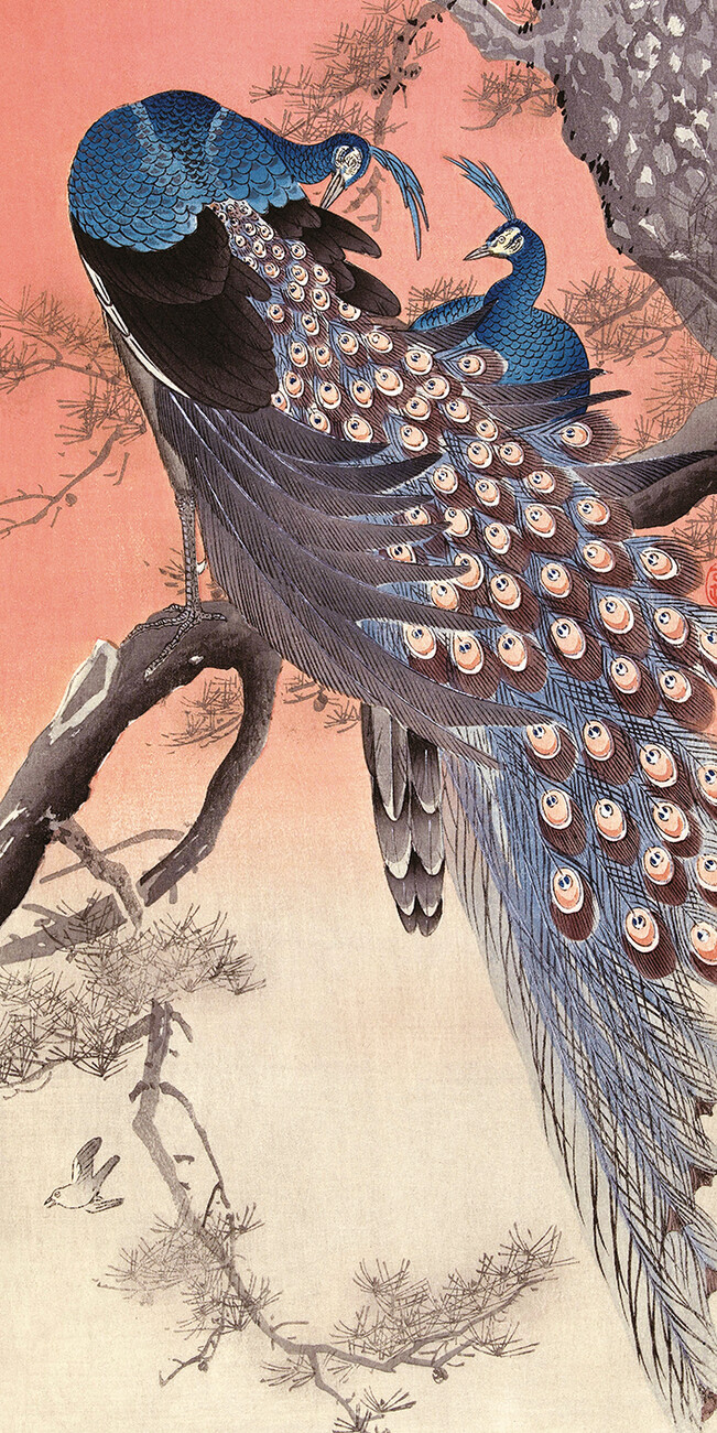 Obraz na plátně Ohara Koson - Two Peacocks on Tree Branch