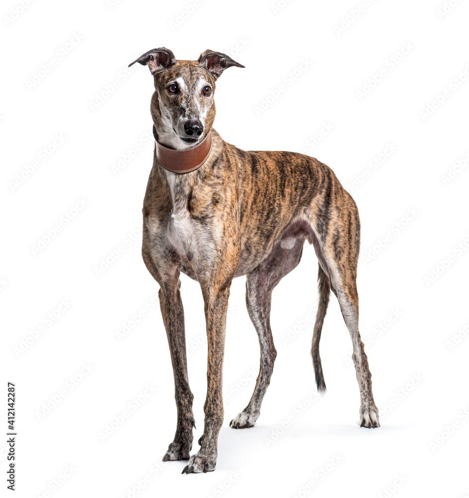 Obraz na plátně Old greying brown greyhound isolated on white
