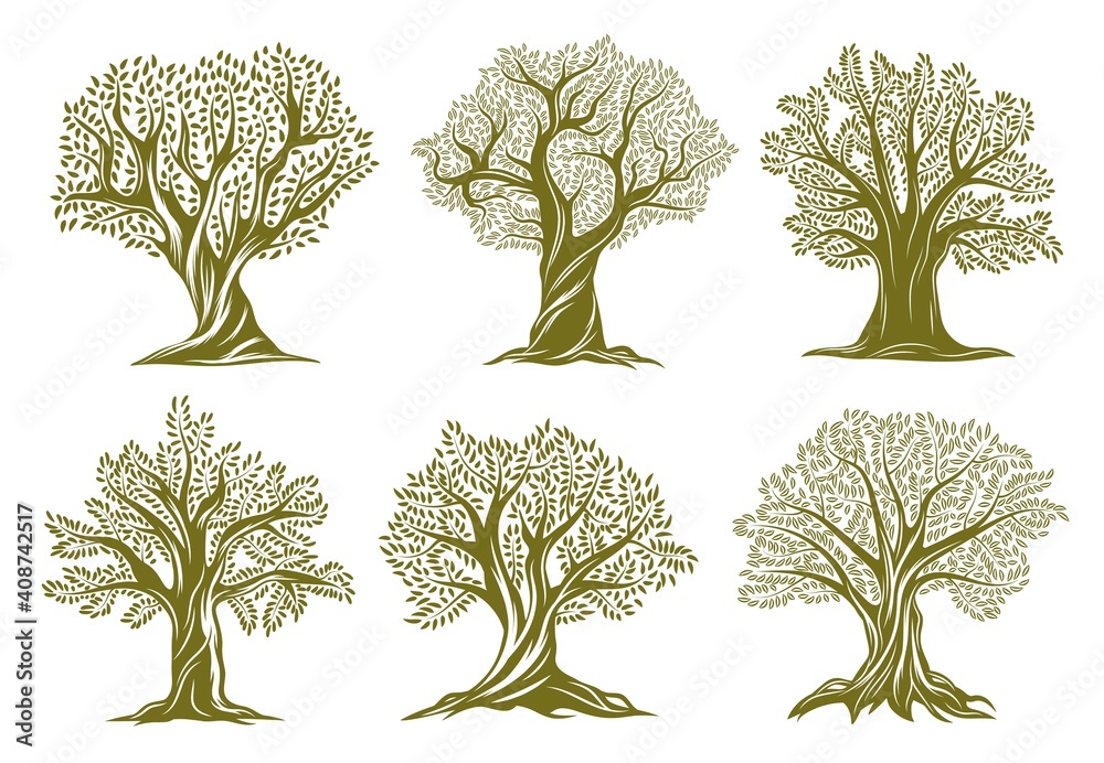Fotografie Old olive, willow or oak trees engraved icons