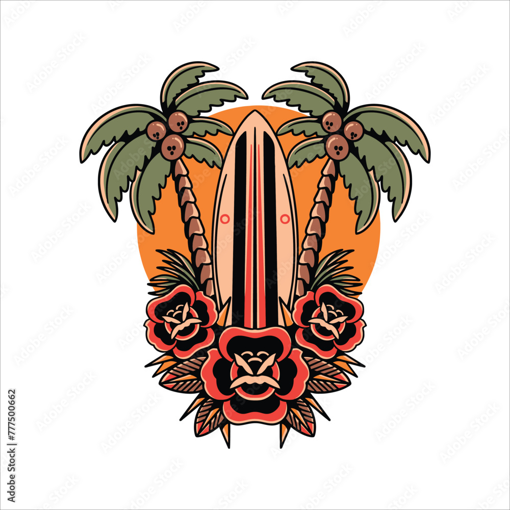 Fotografie oldschool summer tattoo vector design