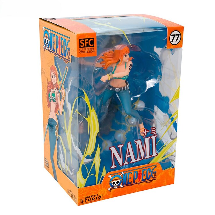 Nami z posádky Slunce přichází v podobě detailní 16cm PVC figurky, která zachycuje její odhodlaný výraz i ikonickou Clima-Takt hůl. Věrné barvy a precizní detaily z ní dělají must-have kousek pro každého fanouška One Piece.