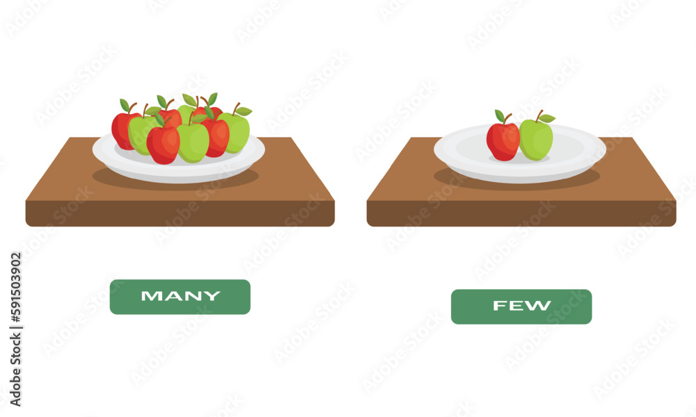 Fotografie Opposite antonym word many and few illustration of apples