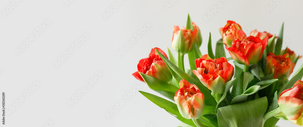 Fotografie Orange-red tulip flowers bouquet on white background