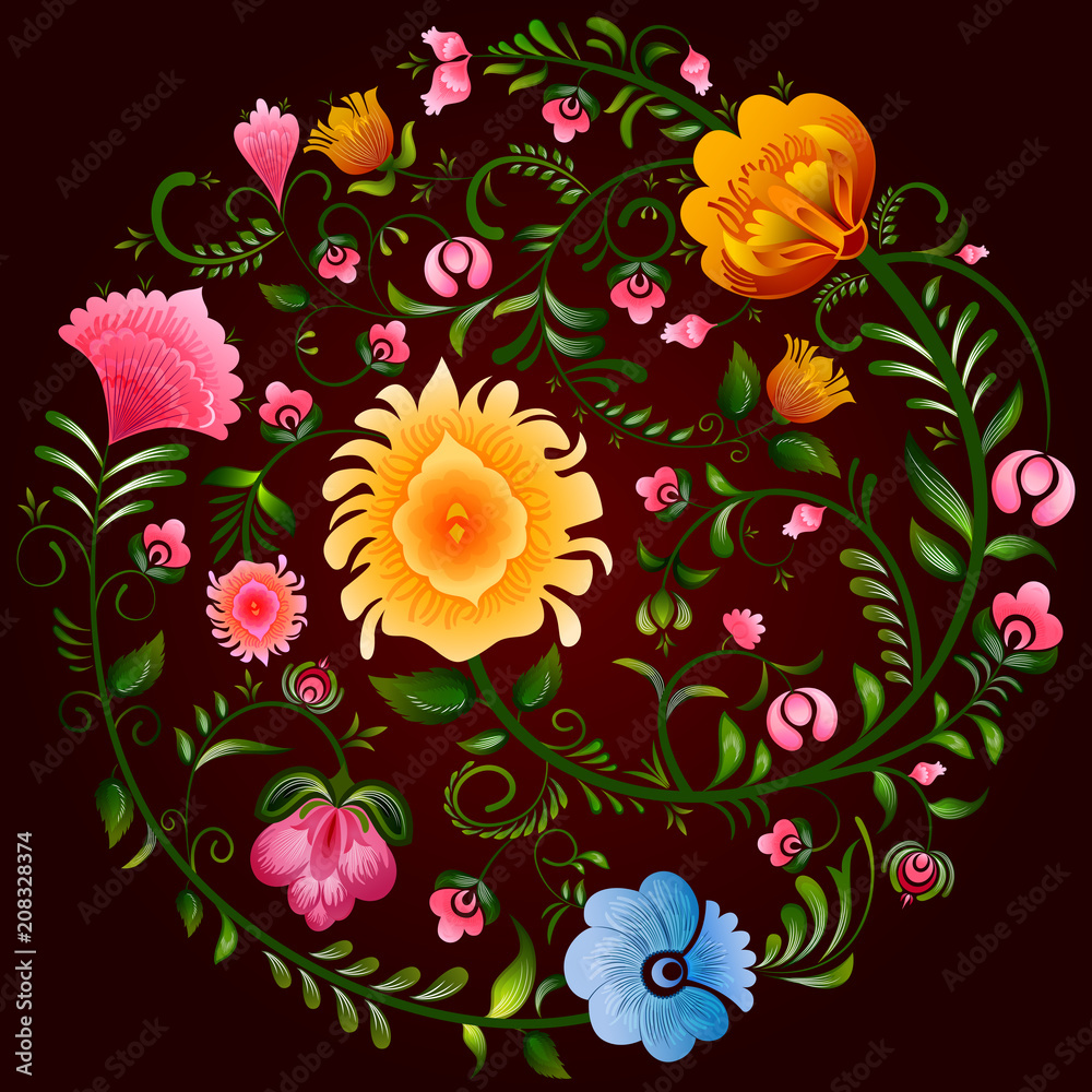 Fototapeta Ornamental flower design of Khokhloma a Russian style painting