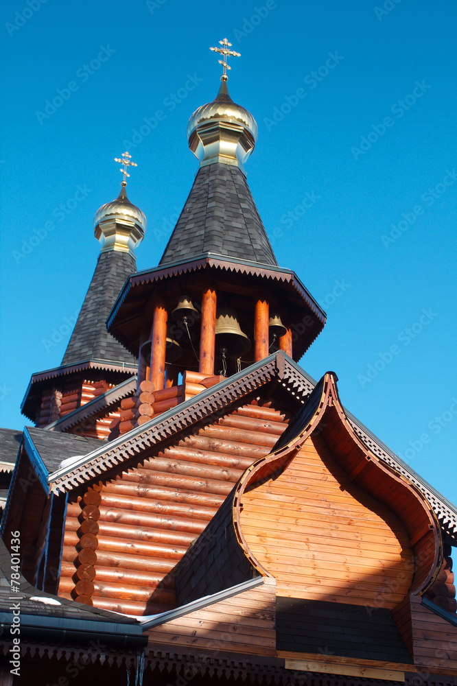 Obraz na plátně Orthodox Russian and Ukrainian wooden church in Kharkov