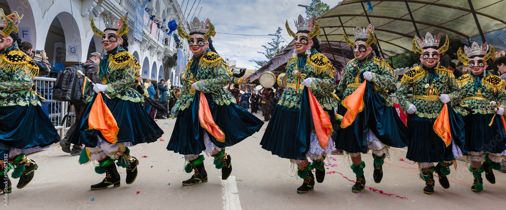 Obraz na plátně Oruro carnival in Bolivia with masked dancer during procession