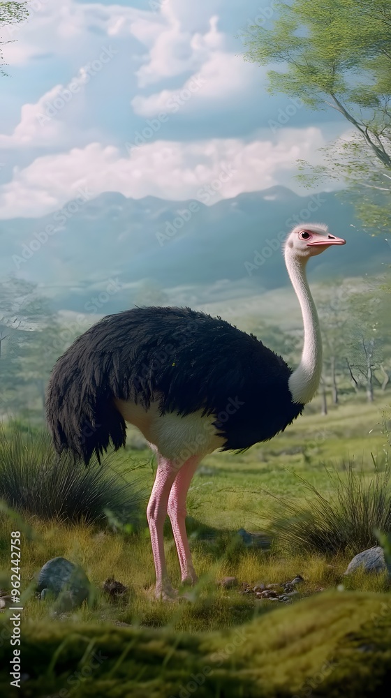 Fotografie Ostrich in Nature, Photo Realistic, Texture, Pattern Background, Wallpaper, Cove