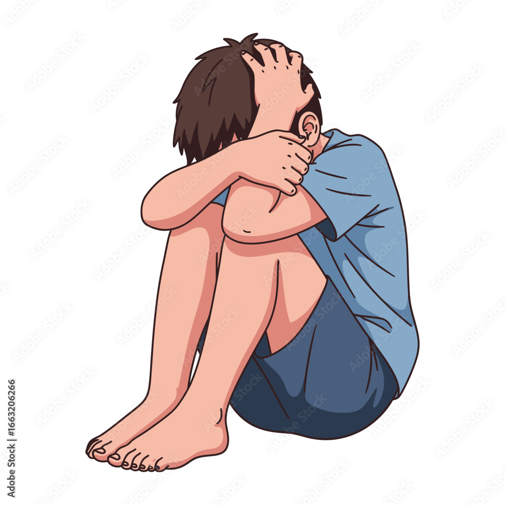 Obraz na plátně Overwhelmed: A solitary figure, head bowed in a moment of profound reflection, sits in a posture of despondency, a stark portrayal of introspection and internal struggle