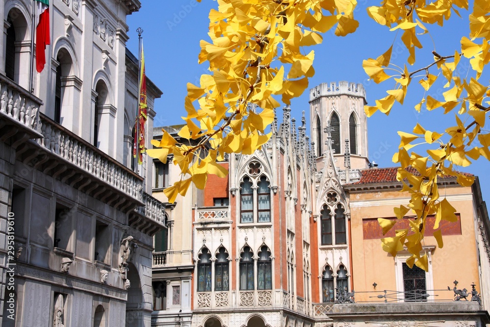 Fotografie Padua, Italy. Autumn tree yellow leaves. Autumn season foliage.
