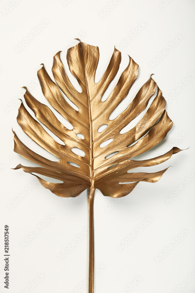 Fotografie Painted tropical Monstera leaf on white background, top view