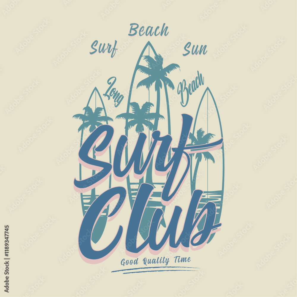 Obraz na plátně Palm tree with surfing board