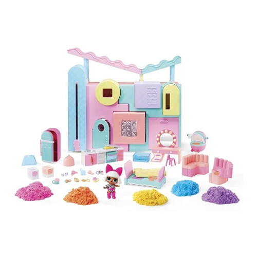 L.O.L. Surprise Squish Sand Magic House je interaktivní domeček obsahující 50+ překvapení. Součástí je exkluzivní panenka Lady Diva, 5 barev tvarovatelného písku a 15 formiček s ukrytými překvapeními. Skvělý dárek pro děti od 4 let!
