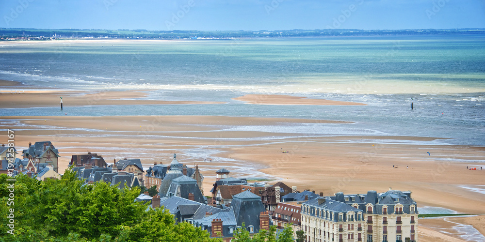 Obraz na plátně Panoramic aeroal view of the city and beach of Houlgate, Normandy, France