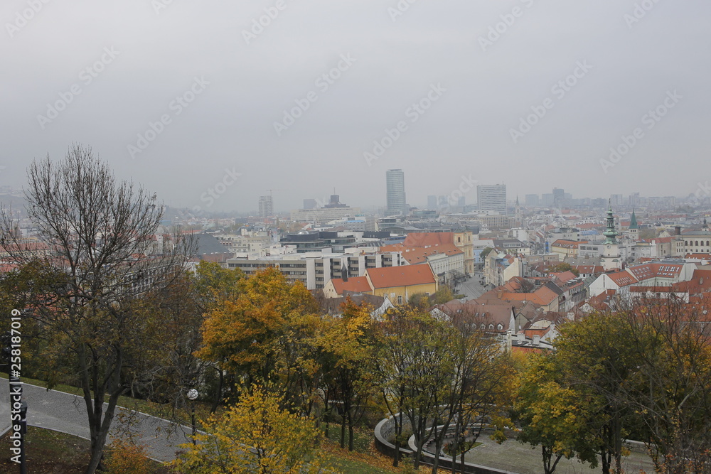 Fotografie Panoramic view of Bratislava city, capital of Slovakia, with St Martin's church dome dominant in shot