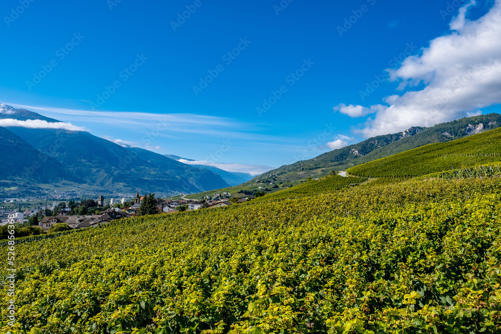 Obraz na plátně Panoramic view over the vineyards - Sierre, Switzerland