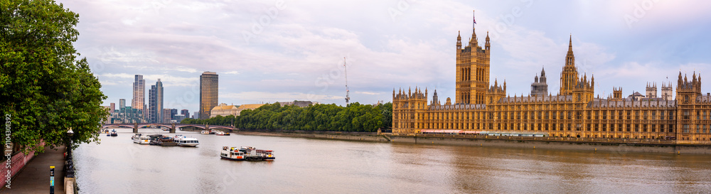 Obraz na plátně Panoramoic View of the Thames River with the British Parliament on the Shores