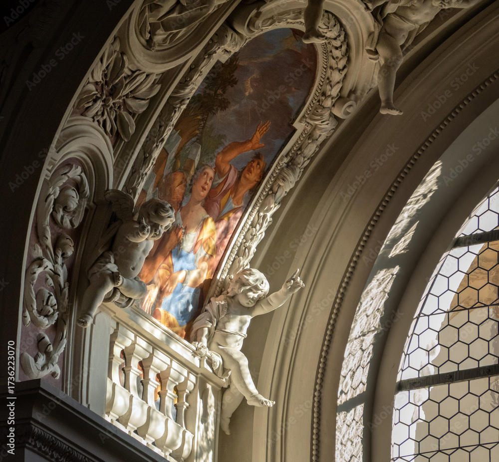 Obraz na plátně Passau, Bavaria, Germany: detail of two cherubs in the interior of the baroque St