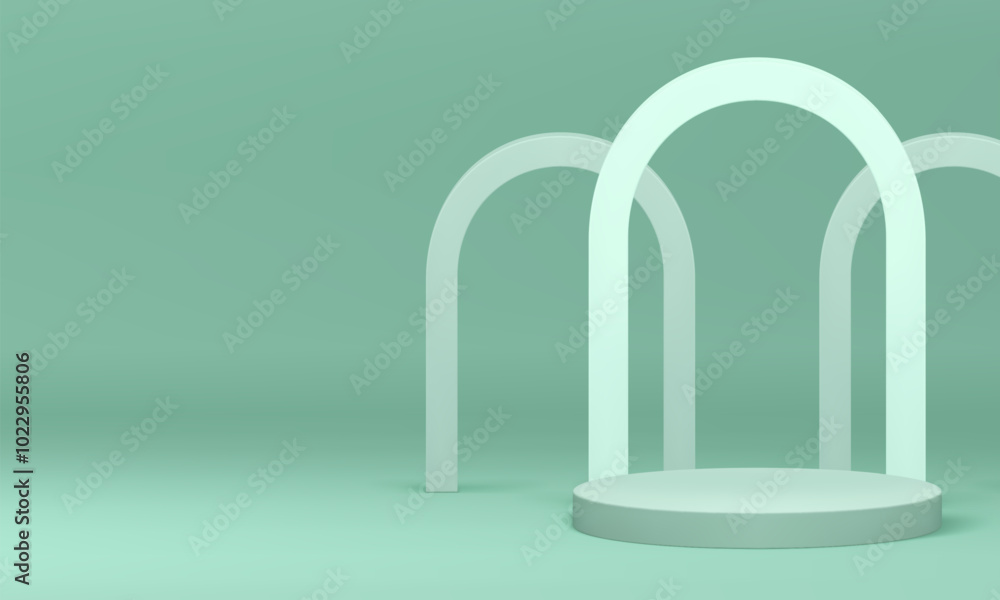 Fotografie Pastel green 3d podium with arch wall background for product show realistic vector illustration