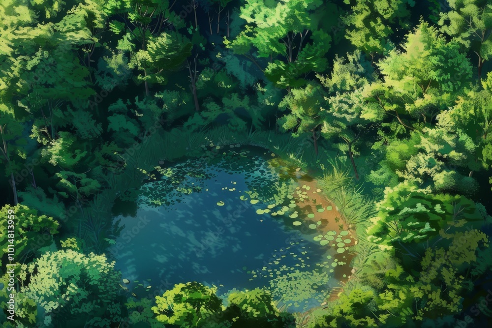 Fotografie Peaceful lofi scene seen from an aerial view.