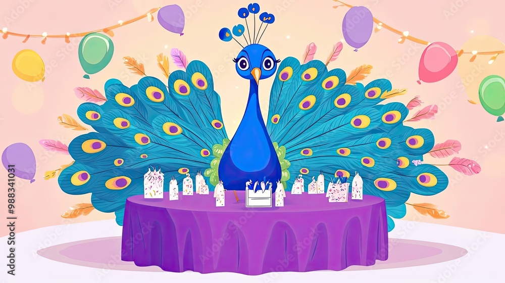Fotografie Peacock with Spread Tail Feathers at a Party