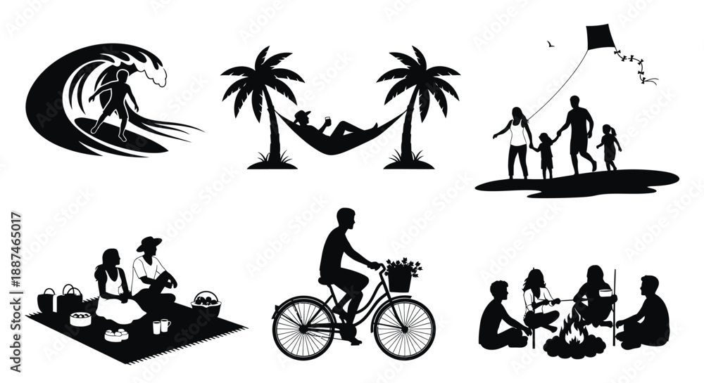 Fotografie People enjoying various leisure activities on a white background