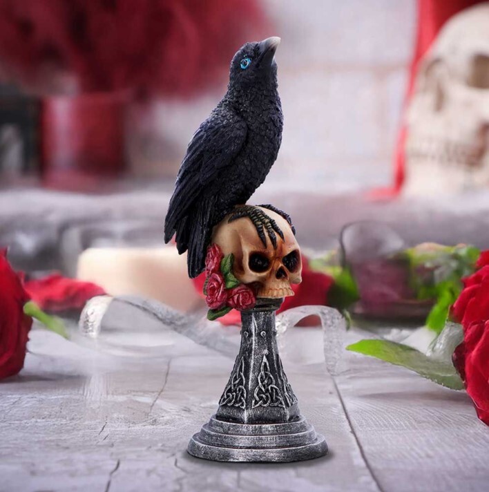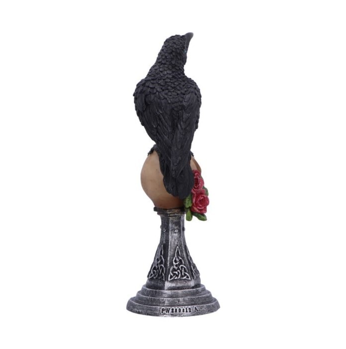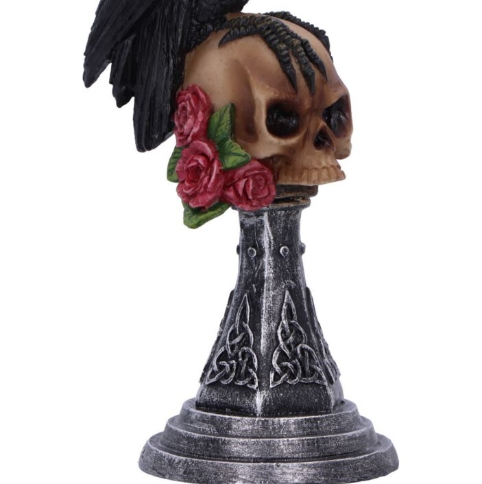 Lebka sama o sobě je bohatě propracovaná, s realistickou strukturou kosti a hluboko zasazenými očními důlky. Na pravé straně ji zdobí jemné růže, které dodávají ponurý, ale zároveň elegantní nádech – propojení gotické krásy s tísnivou atmosférou. Pod lebkou se nachází podstavec s detailními rytinami keltských uzlů, které umocňují duchovní a mystický dojem celého díla.