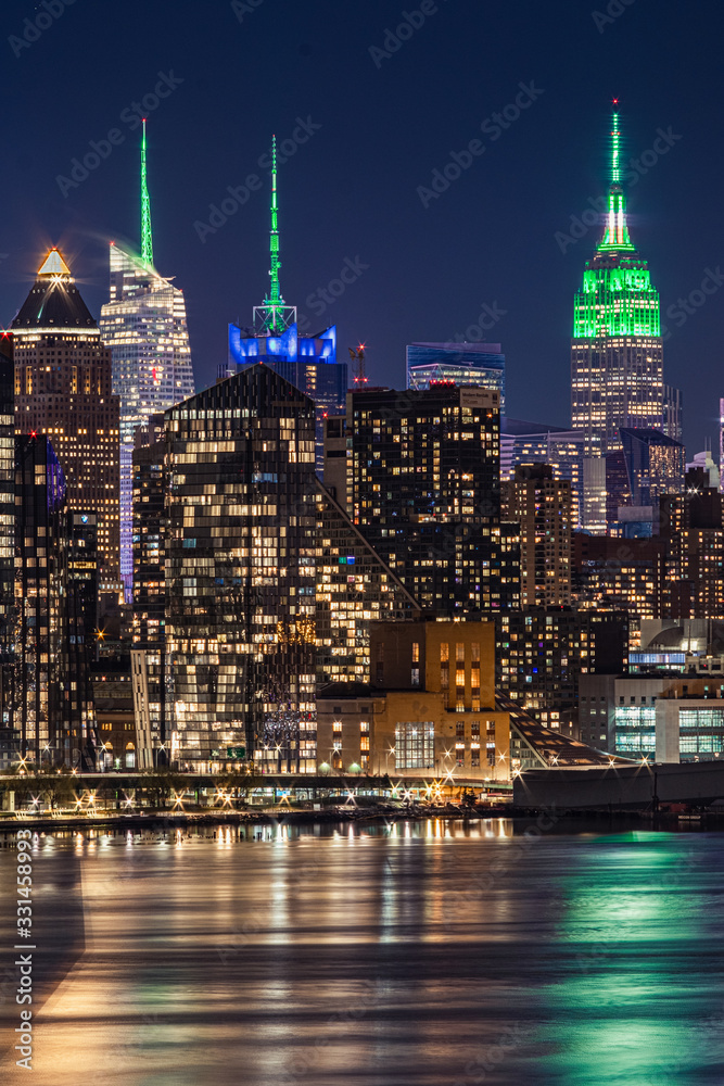Fotografie Photo of the empire state building in its saint patricks day colors as seen from