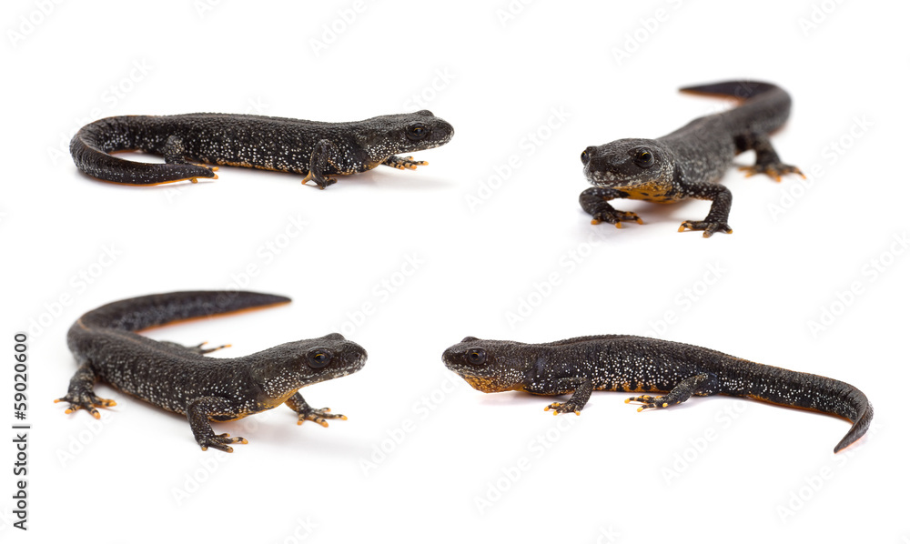 Obraz na plátně Photo set of great crested newt in isolated on white