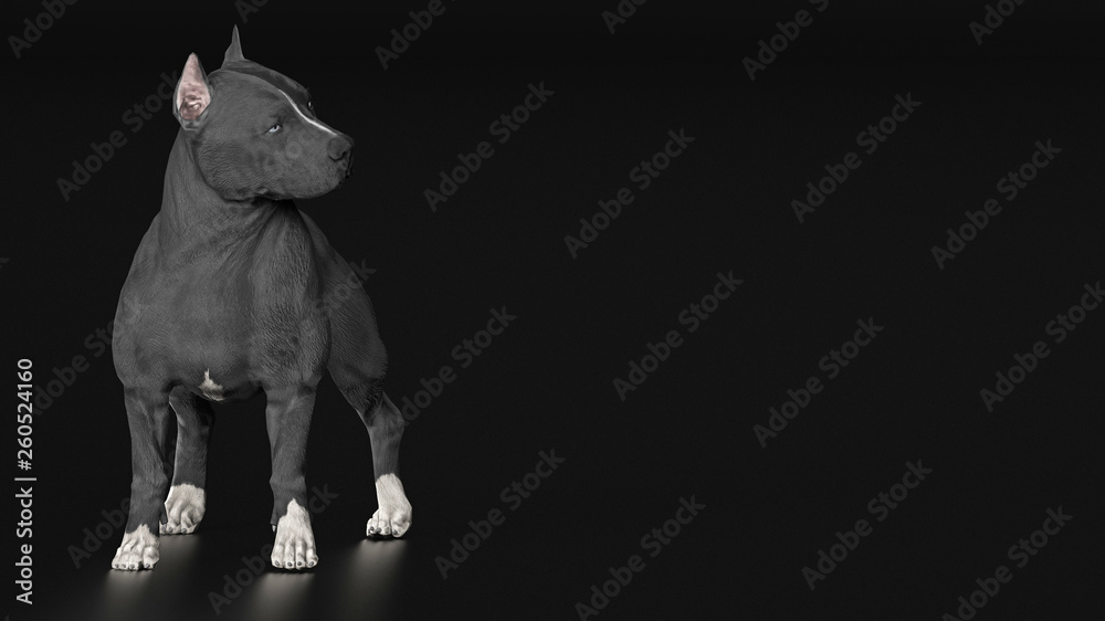 Fotografie Pitbull with turned head ist standing and looking strong 3d render