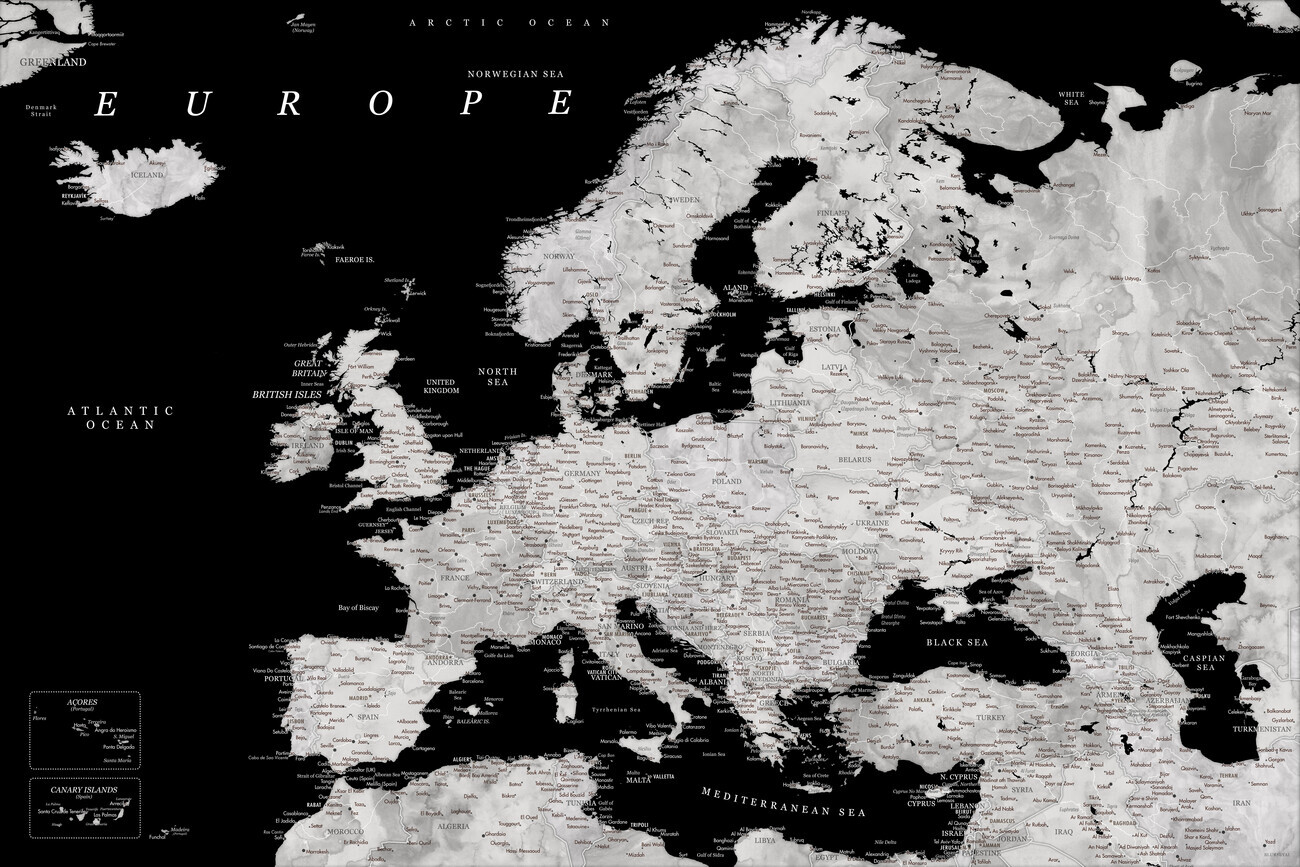 Plakát Blursbyai - Black and grey Europe map