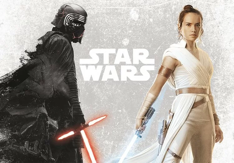Vstupte do světa hvězdných válek s epickým plakátem představujícím ikonické postavy Kylo Rena a Rey. Buďte součástí legendy a přineste sílu k vám do prostoru.
