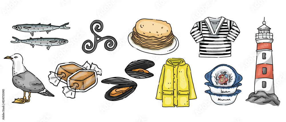 Fotografie Planche d'illustrations sur le thème de la Bretagne