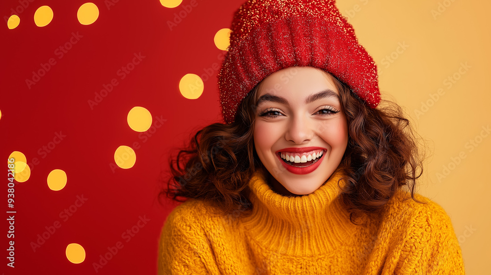 Fotografie Playful Latina teenage girl fashion model in a stylish Christmas outfit with gli