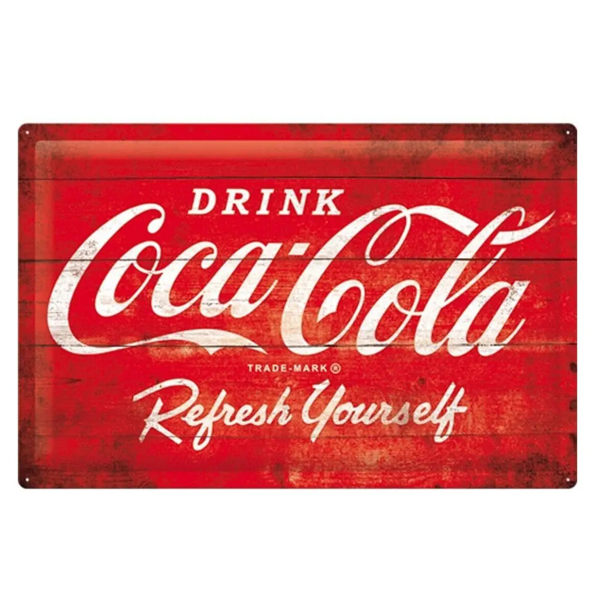 Plechová cedule Coca-Cola - Logo Red Refresh Yourself
