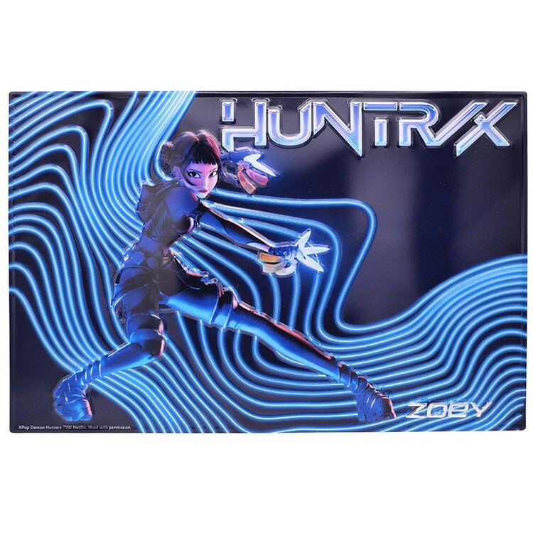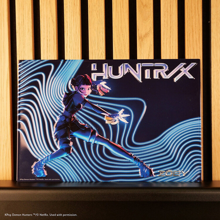 Embosovaná hliníková tabulka oslavuje Zoey, okouzlující a pozitivní zpěvačku tria Huntrix v KPop Demon Hunters. Vystouplý reliéf zvýrazní barvy a přinese na zeď plastický 3D dojem. Oficiálně licencovaný produkt.