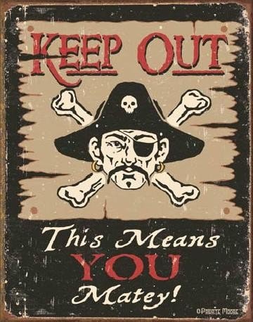 Plechová cedule MOORE - Keep Out Matey