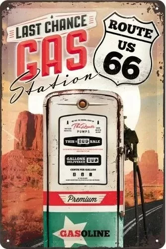 Plechová cedule Route 66 - Gas Station