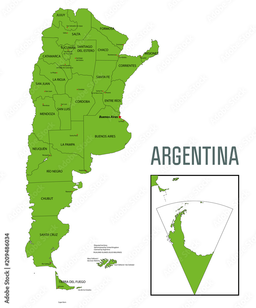 Obraz na plátně Political vector map of Argentina