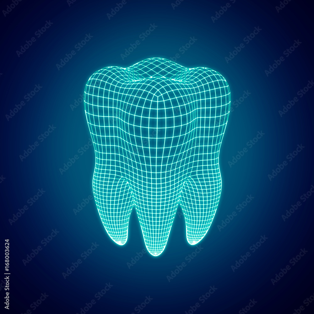 Obraz na plátně Polygonal mesh tooth on a dark background. 3d render