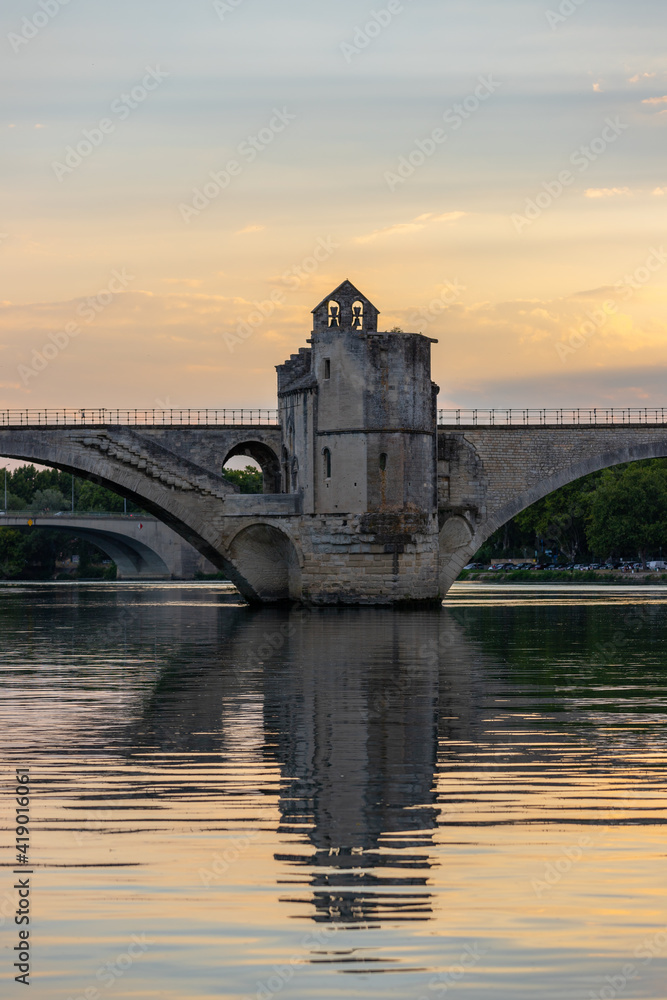 Fotografie Pont Saint Benezet, Pont d Avignon over the rhone river in the Provence in Franc