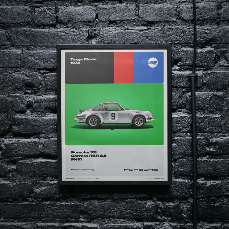 Umělecký tisk Porsche 911 Carrera RS 2.8 - 50th Anniversary - Targa Florio - 1973