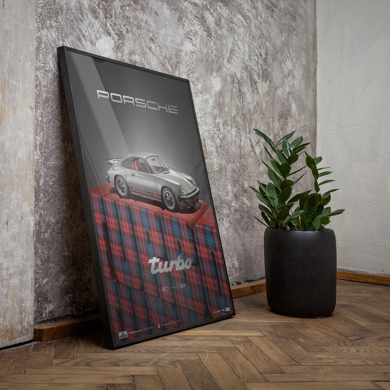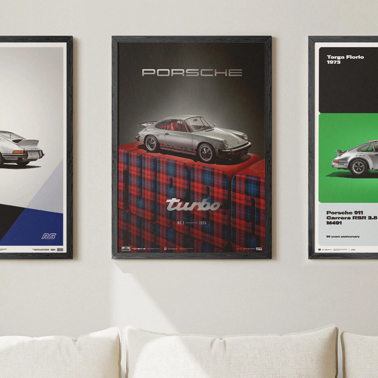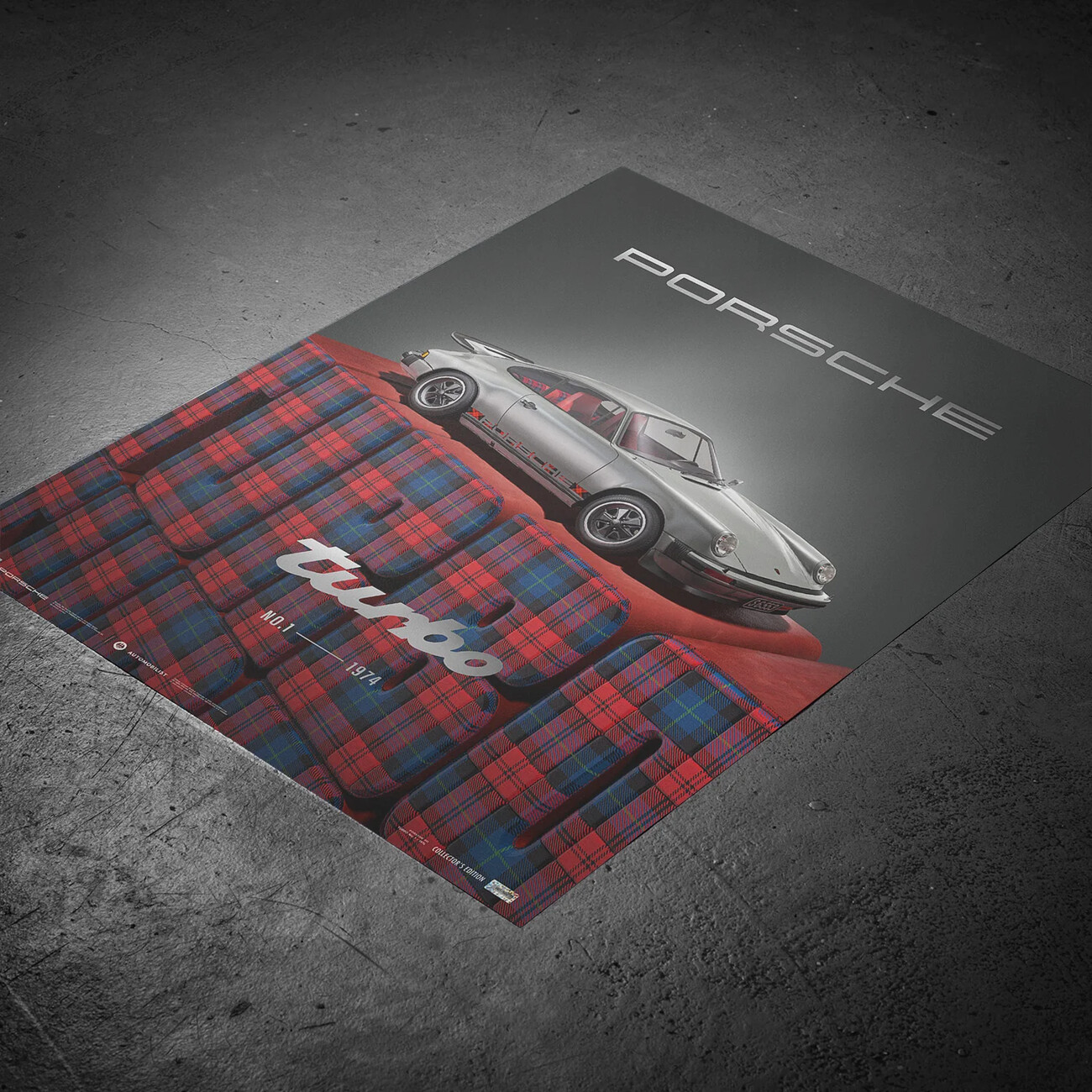 Celebrate Porsche’s rich history with the 1974 Porsche 911 Turbo "No. 1" Prototype. Made with hot-foil embossing and silver detailing, this limited-edition artwork captures the very first road-ready 911 Turbo, gifted to Louise Piëch for her 70th birthday. Global Shipping from Europe, delivered rolled in a protective tube. Frame is not included. The dispatch of this poster will begin on Monday, the 7th of October 2024.
