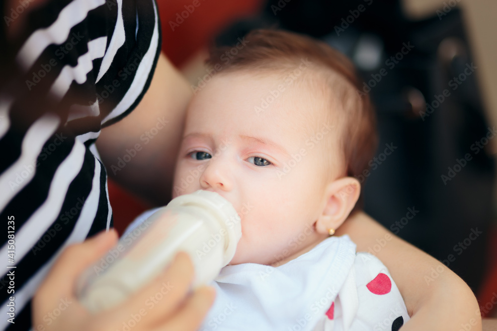 Fotografie Portrait of a Baby Being Bottle Fed Outdoors in the Park