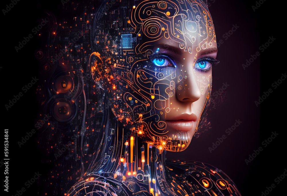 Fotografie Portrait of a female cyborg robot,digital illustration generative AI