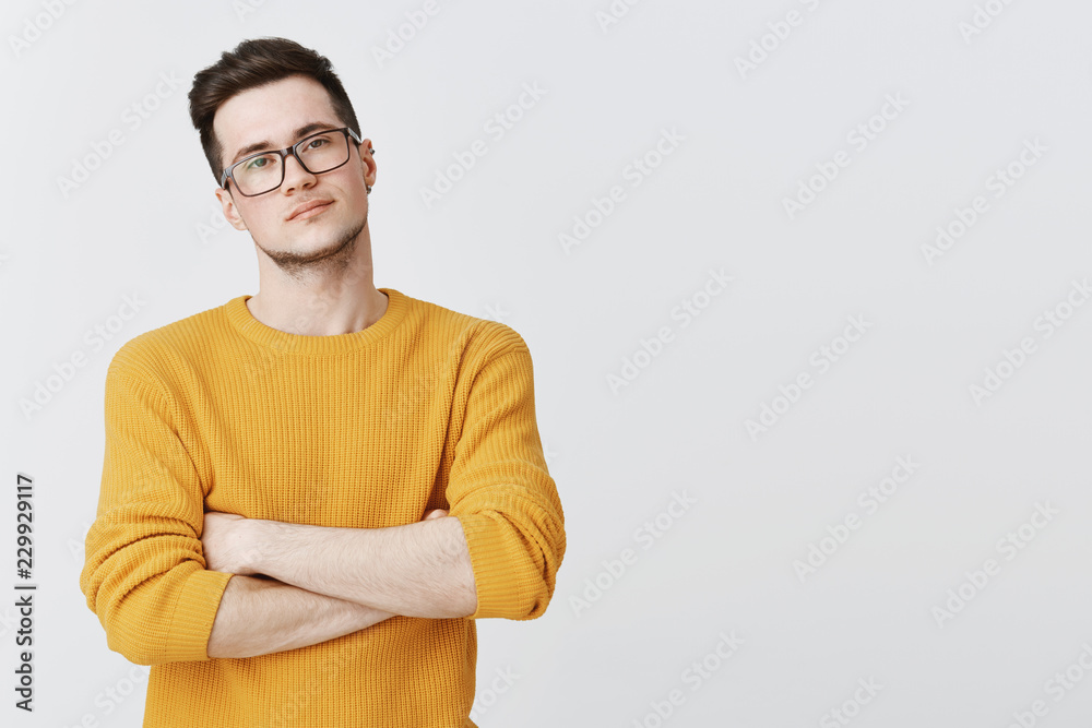 Obraz na plátně Portrait of serious-looking handsome and smart young man in glasses and yellow s