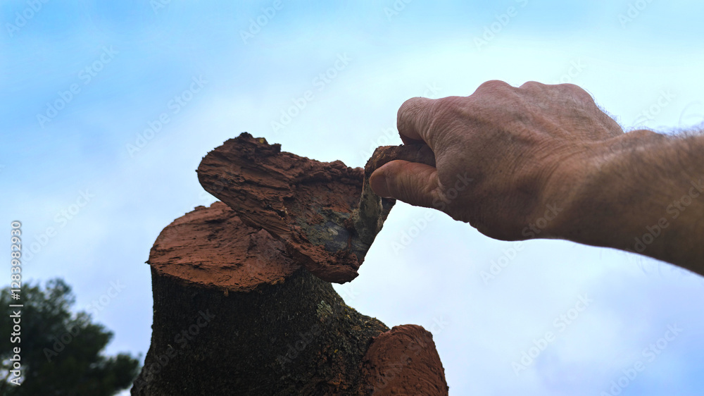 Fotografie Pose d'argile sur une coupe de branche de murier