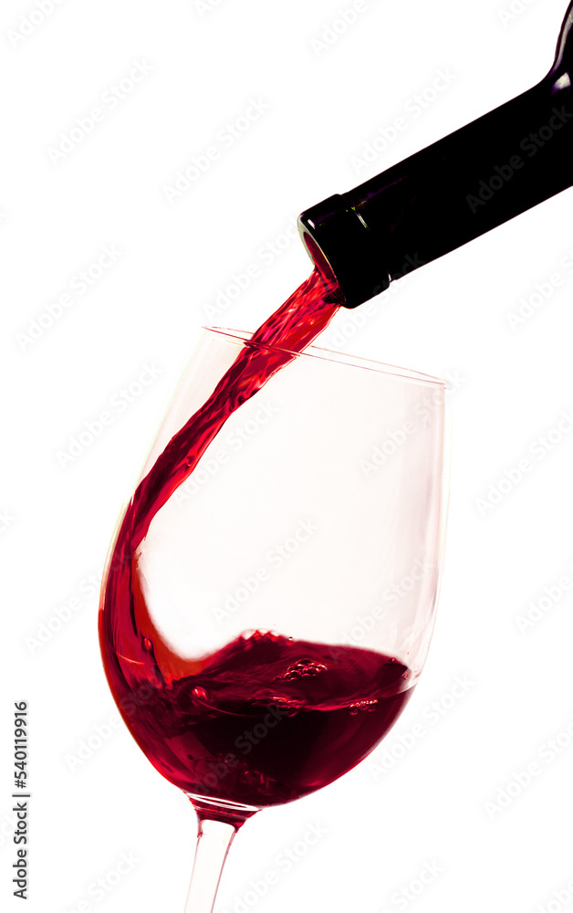 Fotografie Pouring Red Wine into a Glass - Isolated